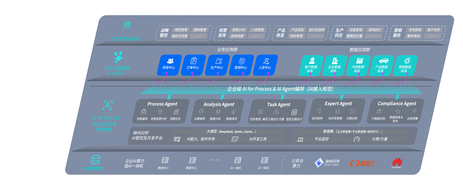 壹号平台问学智车解决方案是一套基于AI技术的汽车行业智能化系统,,,覆盖从底层算力到顶层AI应用的全栈方案。。方案由算力层、、、、模型层和应用层组成:算力层,,,方案支持多种一体机配置,,,具备云端灵活部署、、多云适配以及动态优化计算资源的能力;模型层,,,壹号平台问学平台版提供了企业级AI应用一站式构建与管理平台,,支持基于后训练强化技术的汽车企业专属模型的训练、、评测和运营;应用层,,壹号平台问学DeepSeek版提供包括超级员工、、、、智能招采、、智能营销、、智能客服、、、、AI for BI等一系列解决方案,,可助力汽车行业实现数字化转型,,让管理更智能、、响应更敏捷。。。。